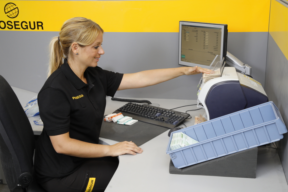 - Zählen und Prüfen der  Banknoten mit Hilfe von modernen Geldbearbeitungsmaschinen
